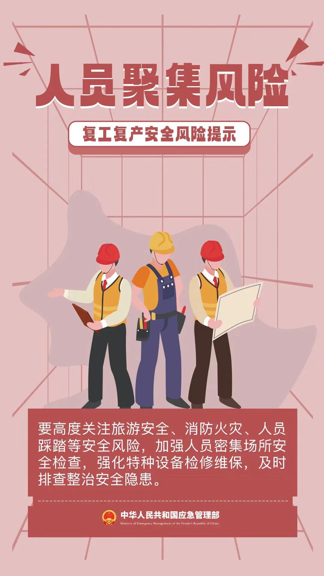 春節(jié)假期結(jié)束,各工程項目陸續(xù)開始復(fù)工復(fù)產(chǎn),安全防范不可疏忽大意。下面帶領(lǐng)大家來了解并盤點一下關(guān)于復(fù)工復(fù)產(chǎn)時期的主要危險因素及應(yīng)對辦法。復(fù)工復(fù)產(chǎn)時期主要危險因素:1.假期綜合征受假期影響,人雖然回到工作崗位了,但思想不集中,這就是“假期綜合征”。其危險之處就在于職工身心疲憊、心情煩躁、精力不集中,很容易