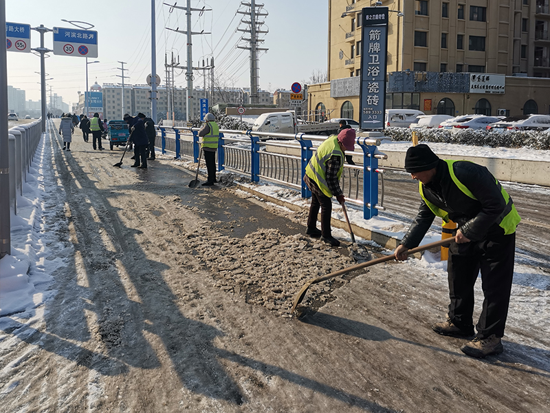 2月4日至5日期間,全市出現(xiàn)連續(xù)降雪、寒潮天氣,給群眾的日常出行帶來很大不便。興滕公司積極響應(yīng)市委市政府號(hào)召,第一時(shí)間組織黨員干部職工到平行路進(jìn)行掃雪除冰,以實(shí)際行動(dòng)踐行“我為群眾辦實(shí)事”。 在現(xiàn)場(chǎng),大家不畏嚴(yán)寒、齊心協(xié)力,攜帶鐵锨、雪鏟等工具迅速投入到破冰除雪活動(dòng)中,同時(shí)安排多臺(tái)鏟車上路清
