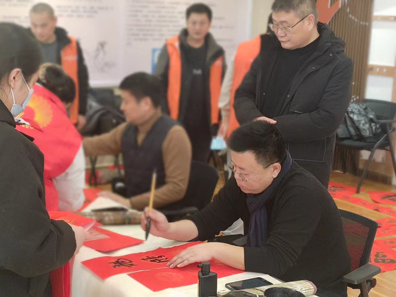 為更好地豐富小區居民文化生活,迎接歡樂、祥和的新春佳節,2月1日,滕投人和天地小區開展“翰墨飄香迎新春 紙墨書香送祝?!睂懘郝撍透W只顒印?活動現場志愿者們提前就把春聯紙、筆墨紙硯等準備齊全,為大家做好書寫服務。書法協會書法家們一早來到小區,挽袖執筆,揮毫潑墨。紅紙為底,黑墨為字