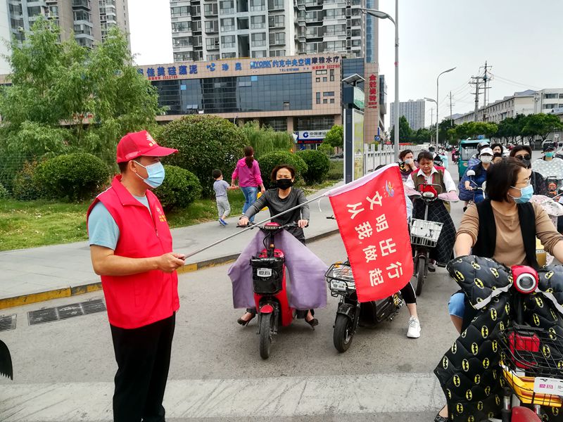在活動現(xiàn)場,文明志愿者們不顧炎熱,身穿紅色馬甲,佩戴志愿服務小紅帽,手持文明交通小紅旗,嚴格按照《文明交通志愿服務活動工作規(guī)范》勸導行人和非機動車不亂穿馬路、不亂闖紅燈,勸導市民自覺遵守交通規(guī)則,提倡文明出行,營造良好交通秩序,認真履行文明交通志愿者職責。